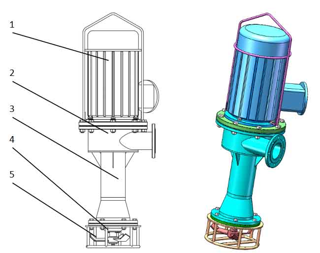 泵下部鉸刀對(duì)介質(zhì)進(jìn)行破碎、攪拌并推送進(jìn)入吸入腔,通過吸入腔內(nèi)的螺旋推進(jìn)器將介質(zhì)輸送至排出腔,排出腔內(nèi)葉輪對(duì)介質(zhì)進(jìn)行加壓輸送入管道。